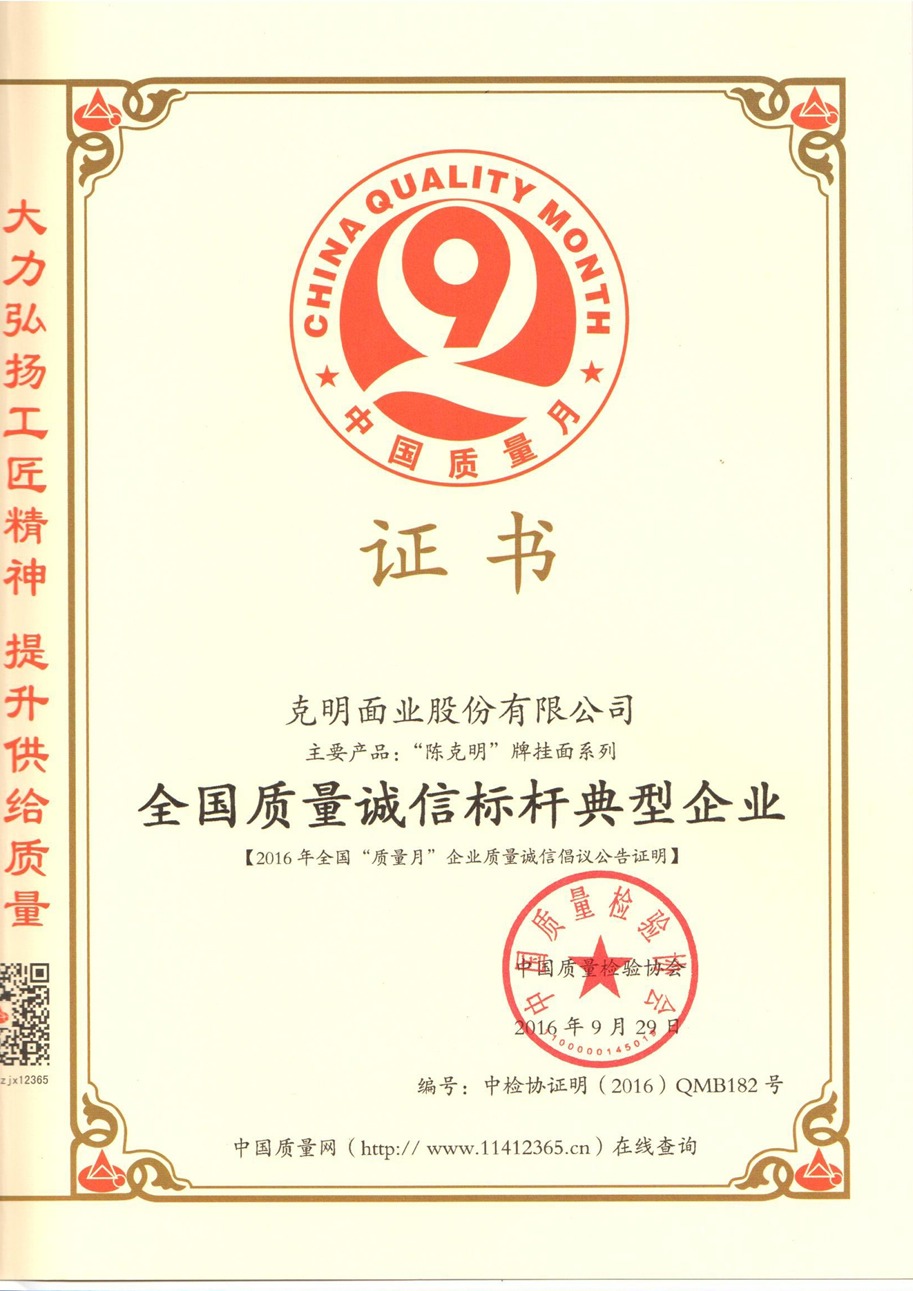 2016全國(guó)質(zhì)量誠(chéng)信標(biāo)桿典型企業(yè)